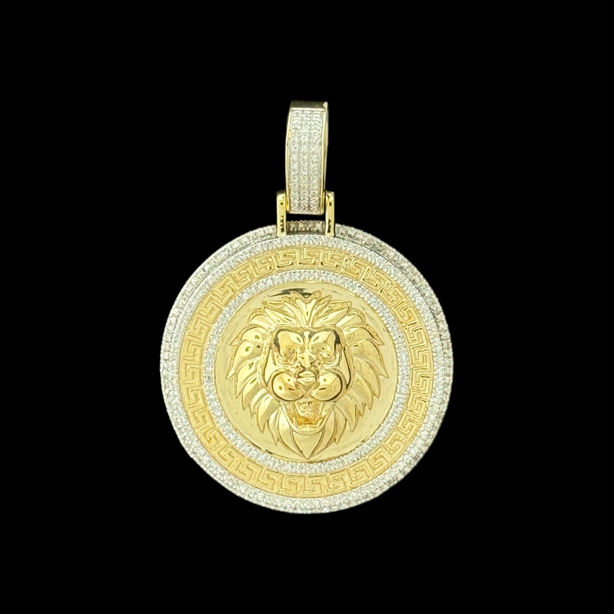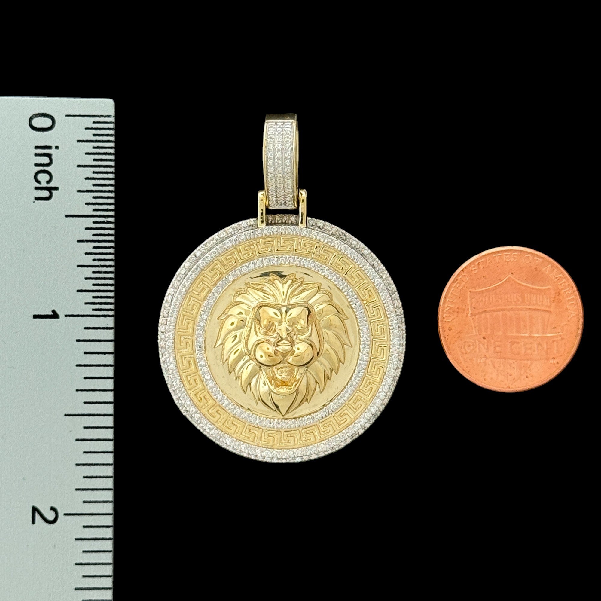 10KT Diamond Lion Pendant with Greek Design, Brand New (With Tags) (0.43CT)