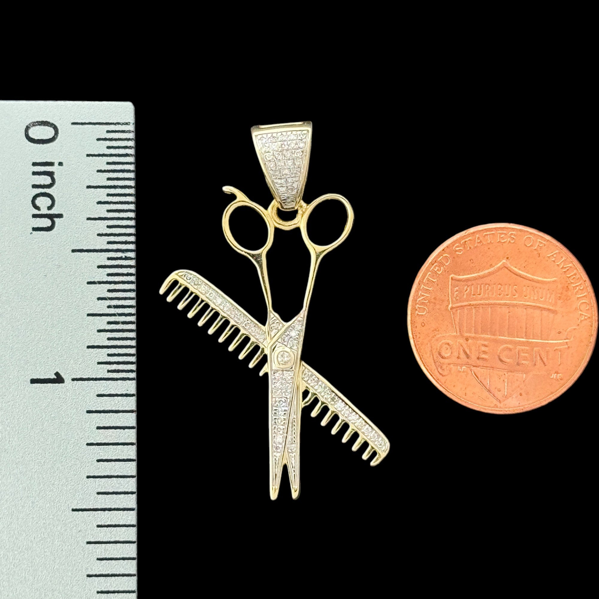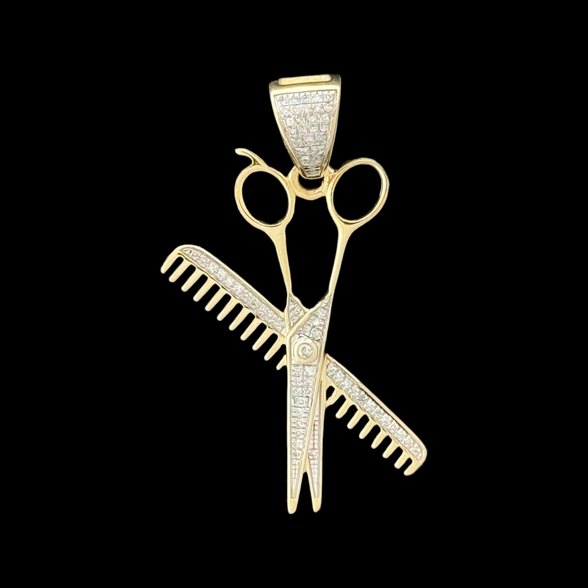 10KT Diamond Scissors and Comb Pendant, Brand New (With Tags) (0.12CT)