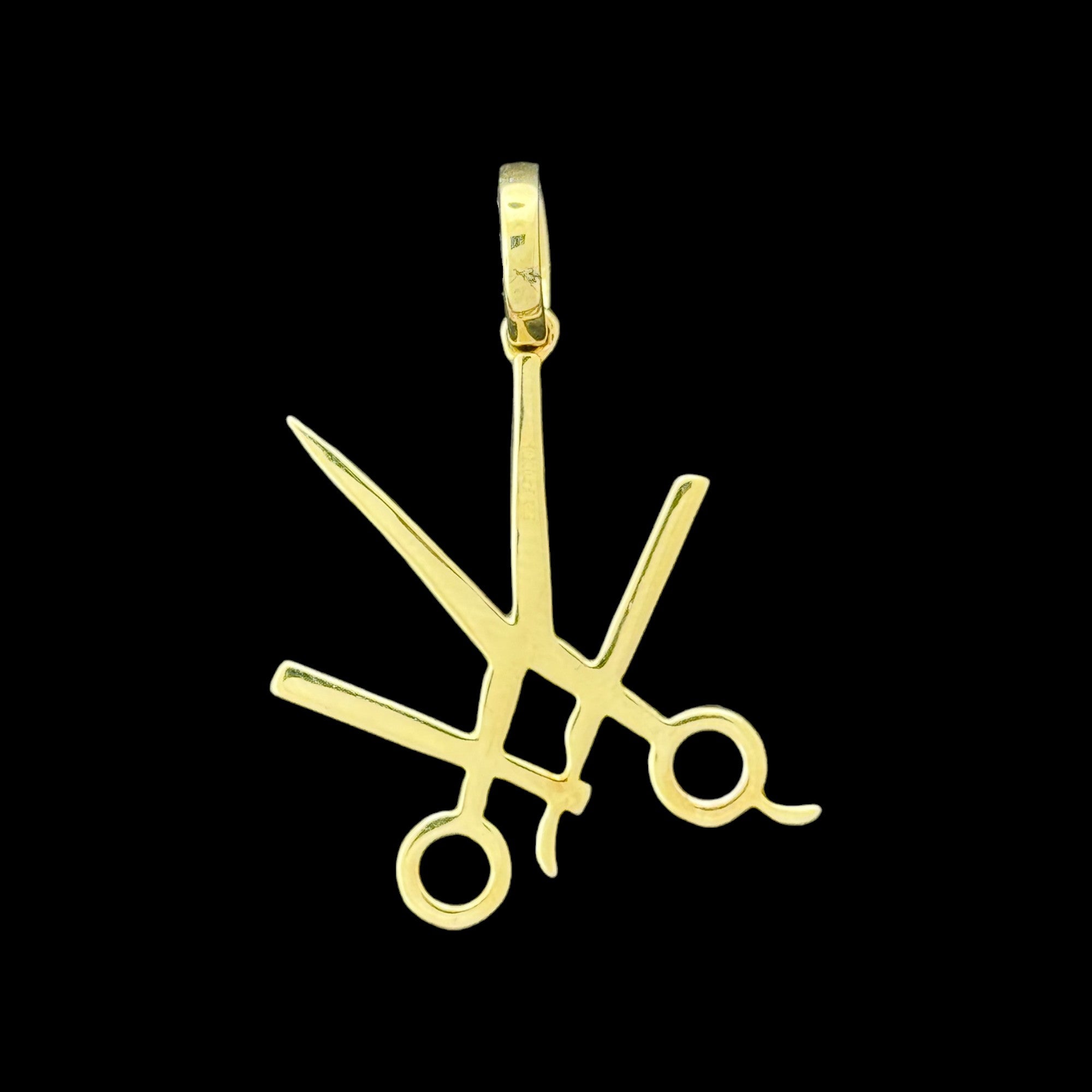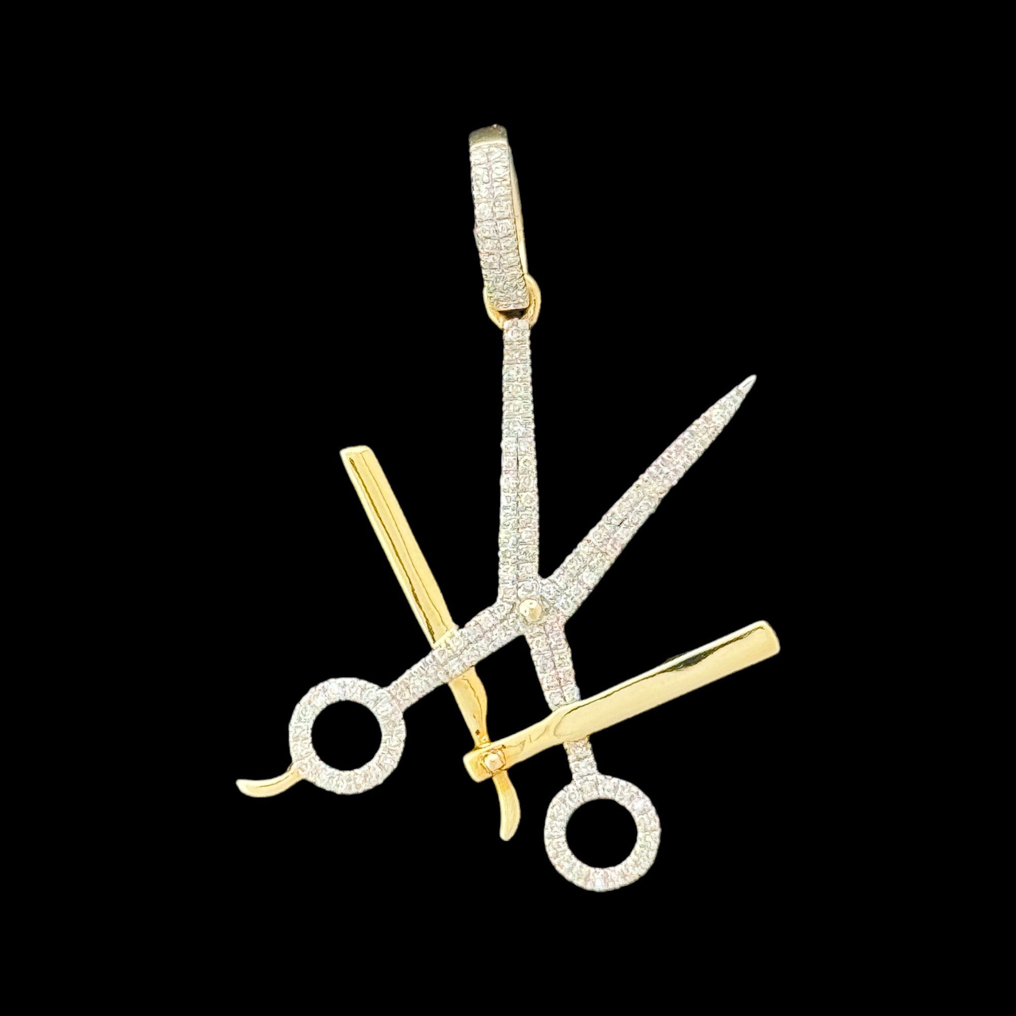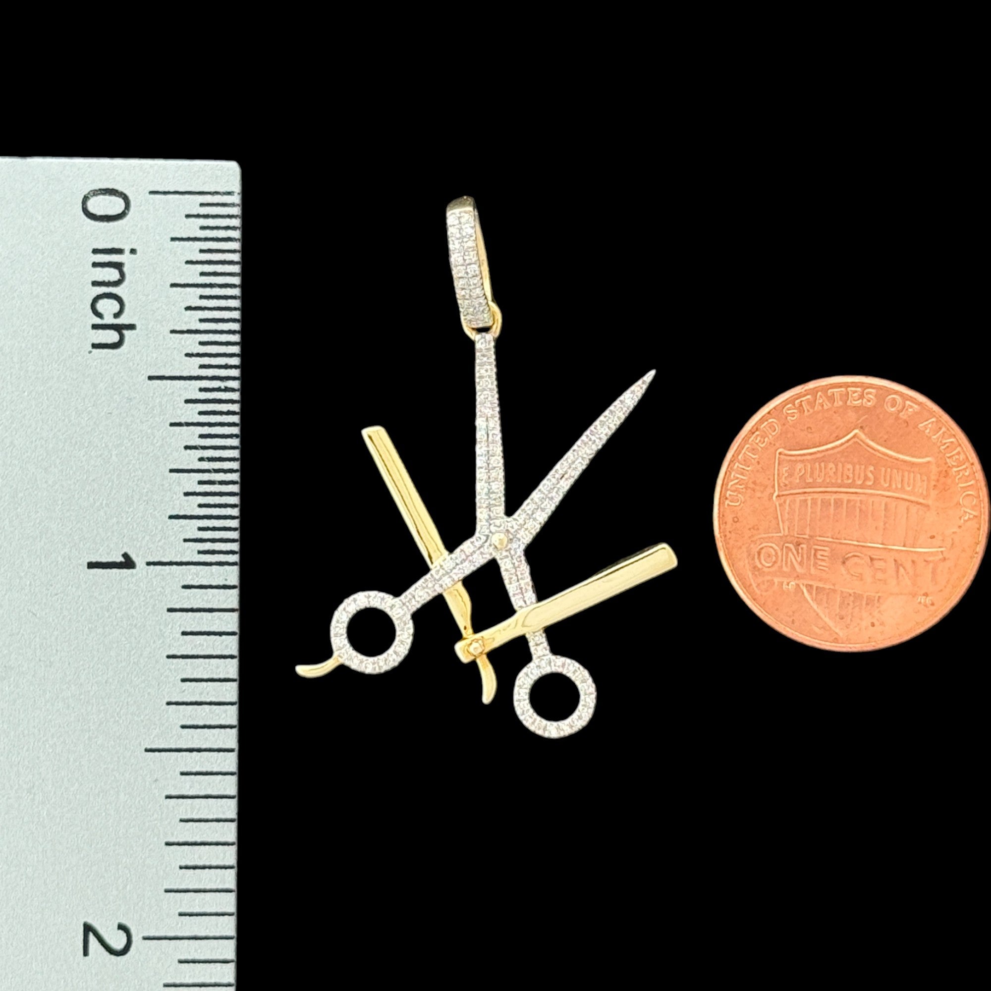10KT Diamond Scissor Shears and Straight Razor Barber Pendant, Brand New (With Tags) (0.22CT)